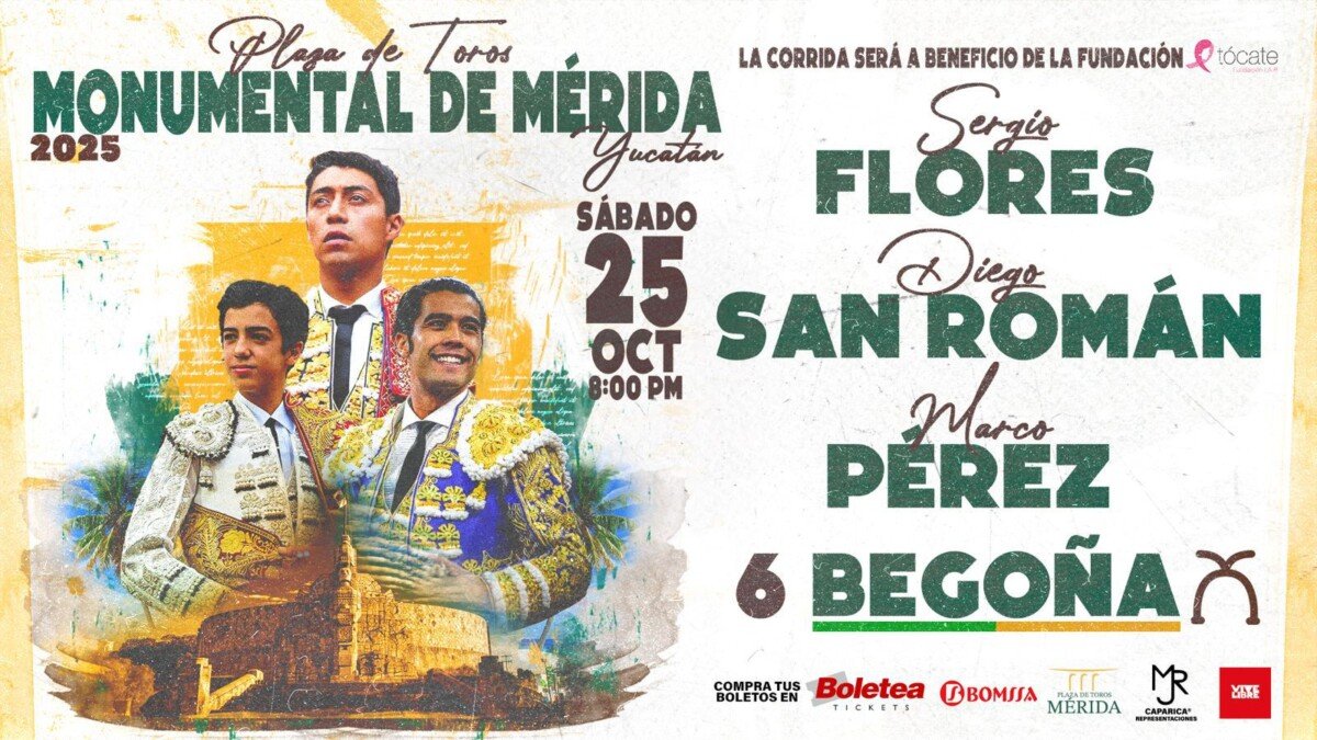 𝖫𝖺 𝗍𝖾𝗆𝗉𝗈𝗋𝖺𝖽𝖺 taurina en la capital yucateca 𝗂𝗇𝗂𝖼𝗂𝖺𝗋á 𝖾l próximo 𝗌á𝖻𝖺𝖽𝗈 𝟤𝟧 𝖽𝖾 𝗈𝖼𝗍𝗎𝖻𝗋𝖾 𝖼𝗈𝗇 𝗎𝗇a combinación 𝖽𝖾 𝗅𝗎𝗃𝗈: 𝖲𝖾𝗋𝗀𝗂𝗈 𝖥𝗅𝗈𝗋𝖾𝗌, 𝖣𝗂𝖾𝗀𝗈 𝖲𝖺𝗇 𝖱𝗈𝗆á𝗇 𝗒 𝖬𝖺𝗋𝖼𝗈 𝖯é𝗋𝖾𝗓, 𝖼𝗈𝗇 𝗍𝗈𝗋𝗈𝗌 𝖽𝖾